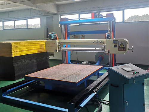 本機(jī)主要是把塊狀泡綿切成薄片,采用自動(dòng)數(shù)字控制,根據(jù)需要切割的厚度和泡綿的密度,通過(guò)控制箱設(shè)定數(shù)值。工作臺(tái)采用不銹鋼板并 帶吸風(fēng)裝置。為了防止切割的泡綿滑動(dòng),可加壓輥,操作簡(jiǎn)便,切割準(zhǔn)確。